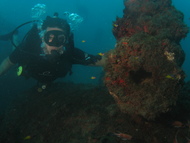 Admiring the wide colors of the coral life. (1280 x 960, 272k) | |  A pretty turtle at the Servemar X wreck site. (1280 x 960, 600k) | |  Too close. A little bit too close. (1280 x 960, 461k) | |